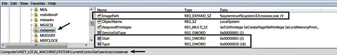 C:\>sc qc "msiserver"