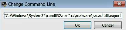 Another effective method is to use rundll32.exe to debug the DLL (let's suppose that you want to debug a malware DLL named rasaut.dll). To do so, first load rundll32.exe from the system32 directory (via File | Open) into the debugger, which will pause the debugger at the system breakpoint or the Entry point of rundll32.exe (depending on the settings mentioned earlier). Then, select Debug | Change Command Line and specify the command-line arguments to rundll32.exe (specify the full path to the DLL and the export function), as follows, and click on OK: