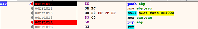 x64dbg does not have specific instruction tracing and function tracing features, but the trace into and trace over options can be used to perform instruction tracing and function tracing. You can control the tracing by adding breakpoints. In the following screenshot, the eip is pointing at the 1st instruction, and a breakpoint is set at the 5th instruction. When the tracing has initiated, the debugger starts tracing from the first instruction, and pauses at the breakpoint. If there is no breakpoint, the tracing continues until the program ends, or until the maximum trace count is reached. You can choose trace into if you want to trace the instructions that are inside the function, or trace over to step over the function and trace the rest of the instructions: