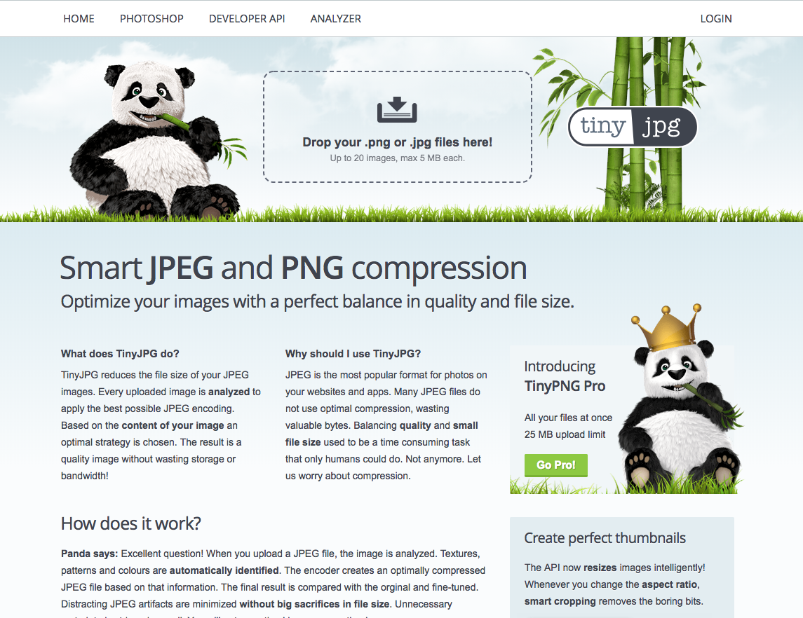 One of my absolute favorite designer tools is TinyPNG. As its name suggests, TinyPNG compresses a PNG or JPEG image to reduce the file size. However, it does so without degrading the visual quality of your files—it's like magic: