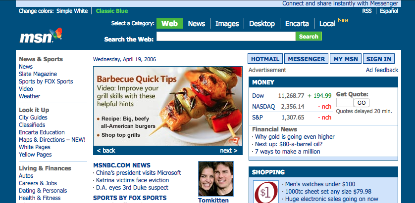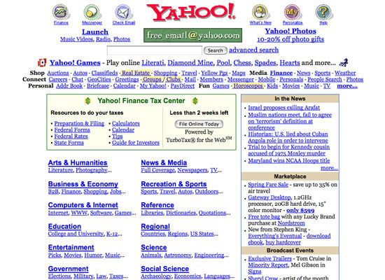 Here are some examples of websites in the 90s. The following screenshot shows how the Yahoo web page used to look back in 1994: