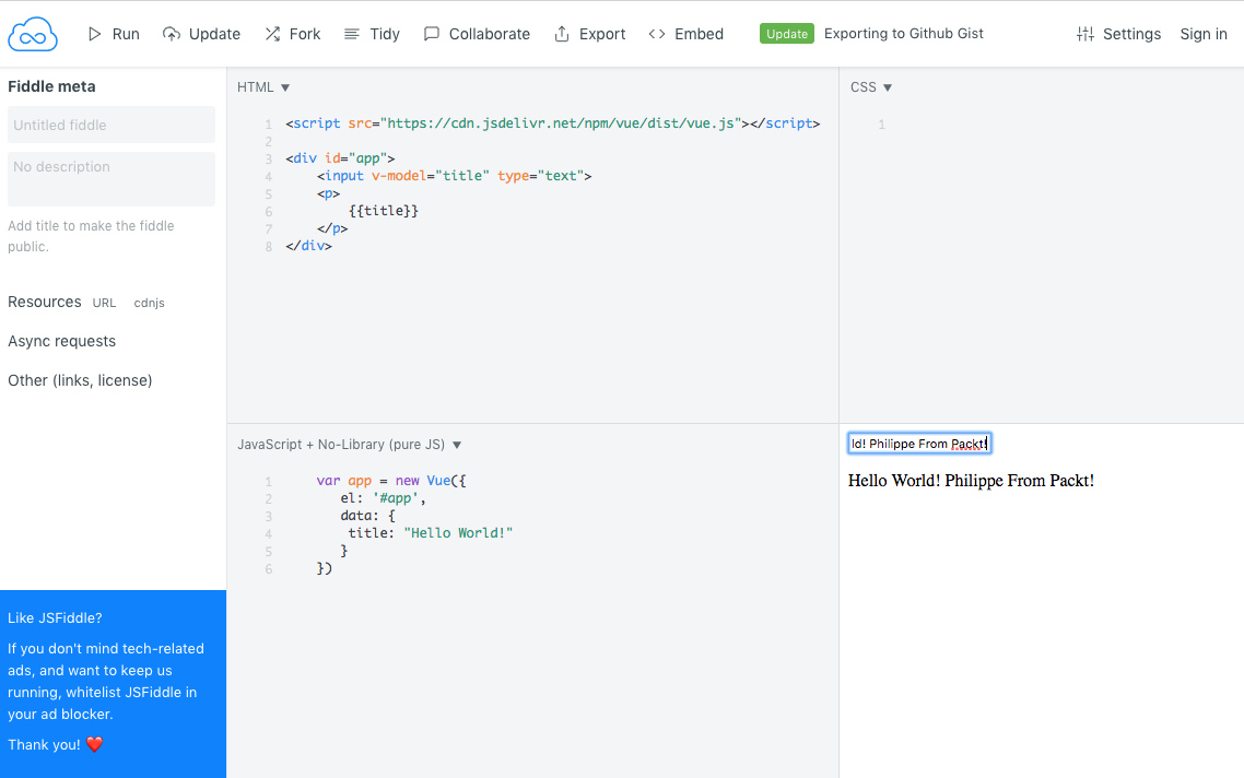 This was a brief introduction to VueJS. There are so much more possibilities with this framework, and I've just touched a very small part of it. I hope this will bring you the curiosity to dig more into VueJS or whichever client-side rendering framework you choose. In the next final chapter, I will show you a list of tools that I use every day to help me with my workflow. These will surely help you as well. Let's jump into it!