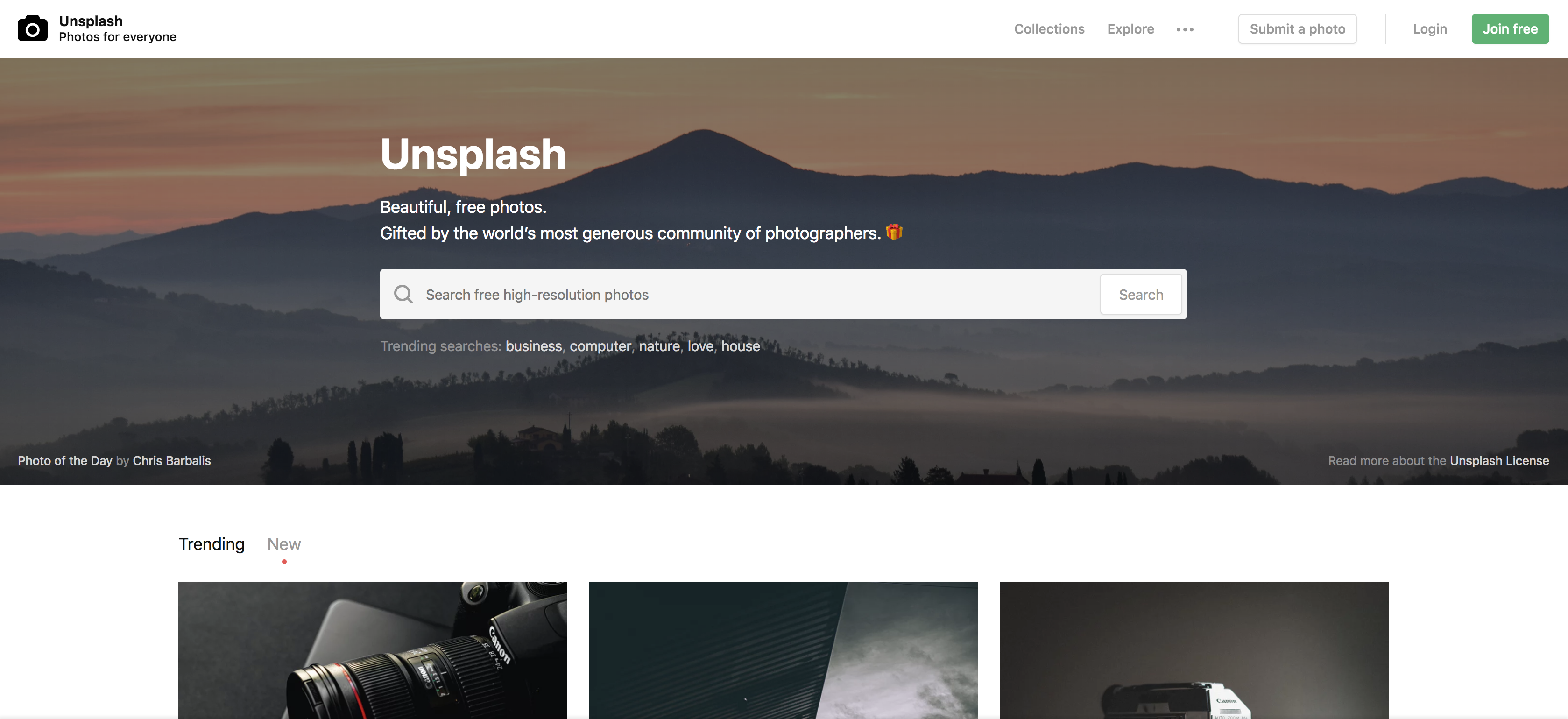 When you need a quality photo, but can't afford to pay photo a photographer, or just need a placeholder for some design, Unsplash (https://unsplash.com/) is for you. It provides open source and free-to-use images uploaded by photographers: