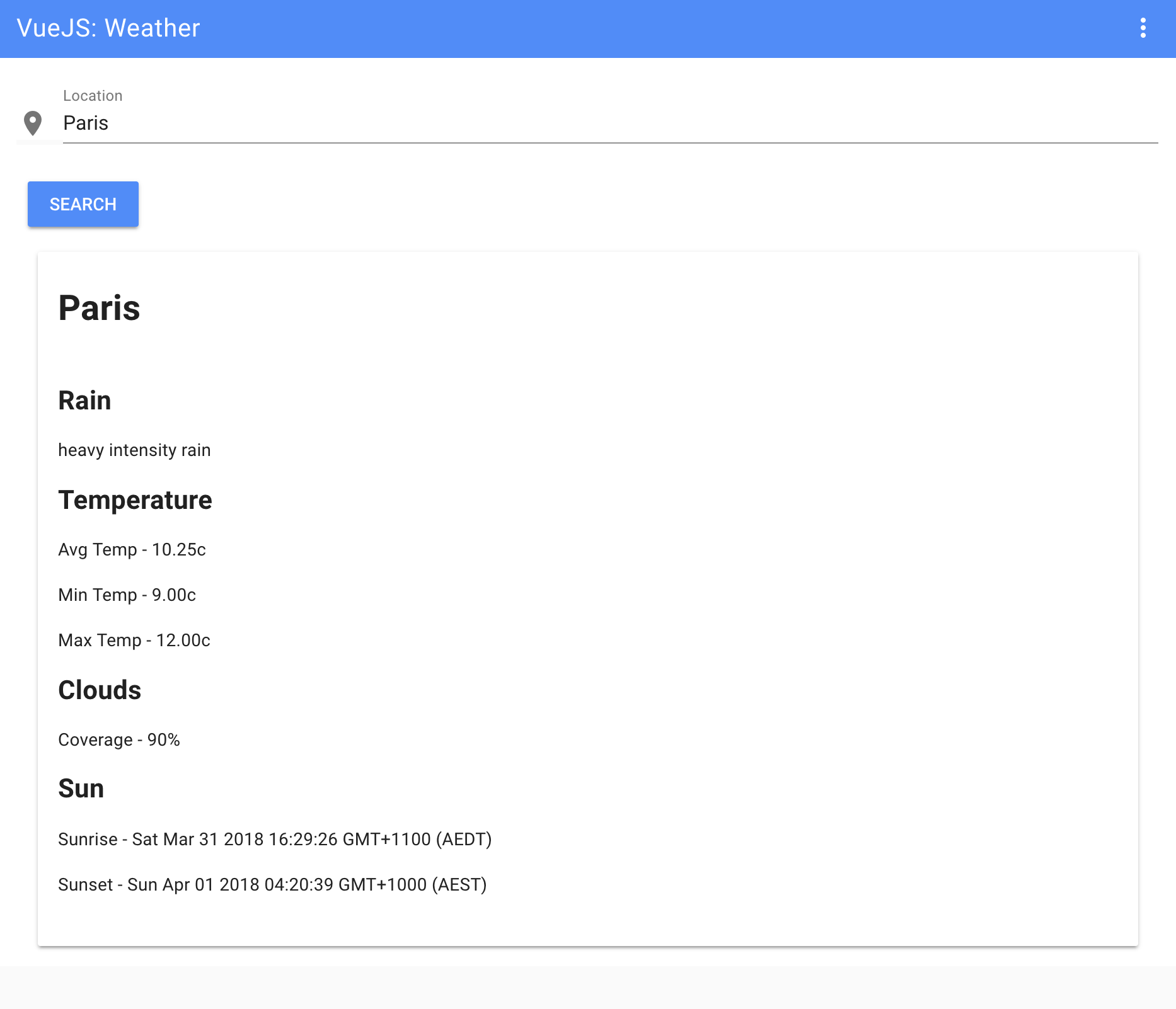 Finally, we have the sunrise and sunset. The format we get from OpenWeather is in timestamp though, so we will need to convert it to date time: