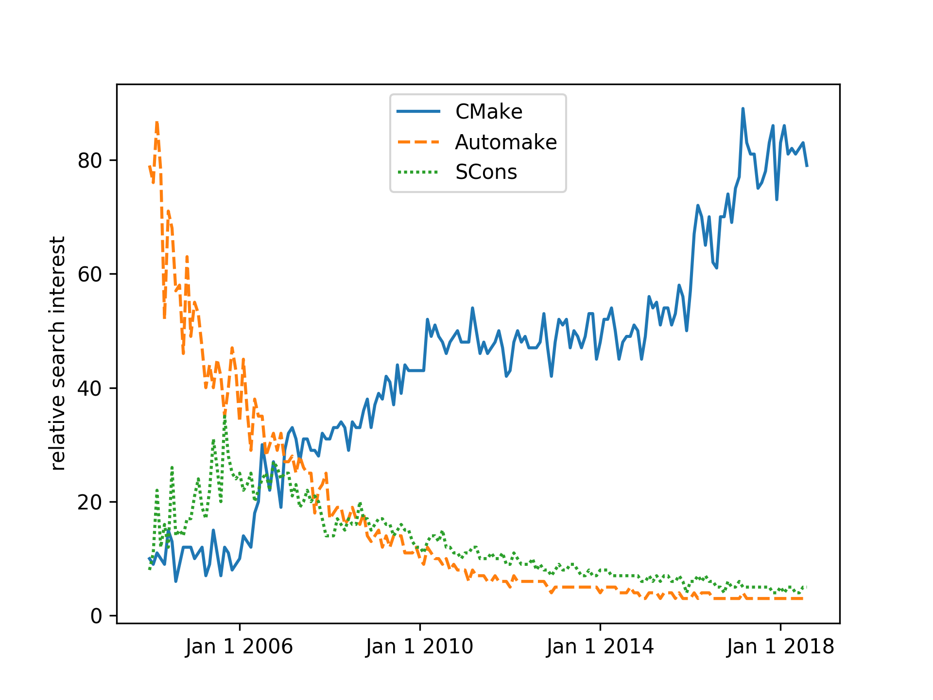 CMake and its siblings, CTest, CPack, and CDash, have emerged as the leading toolset for building software from sources, surpassing in usage and popularity many other similar tools, such as the venerated GNU Autotools and the more recent, Python-based, SCons build system.