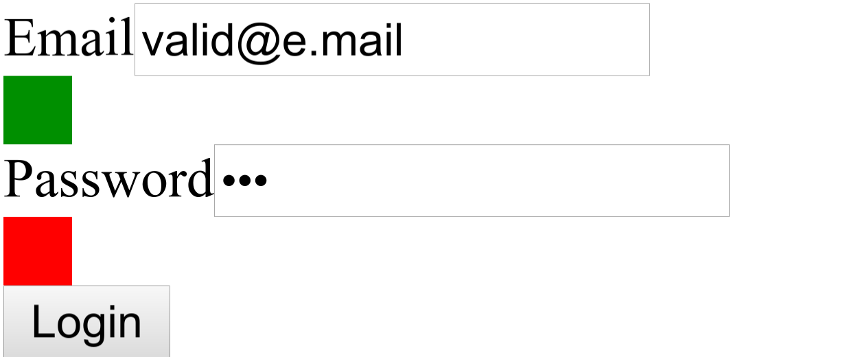 Now, open index.html on your browser, and try out the input boxes. If you enter an invalid email, or your password is too short/long, the indicator will show red.