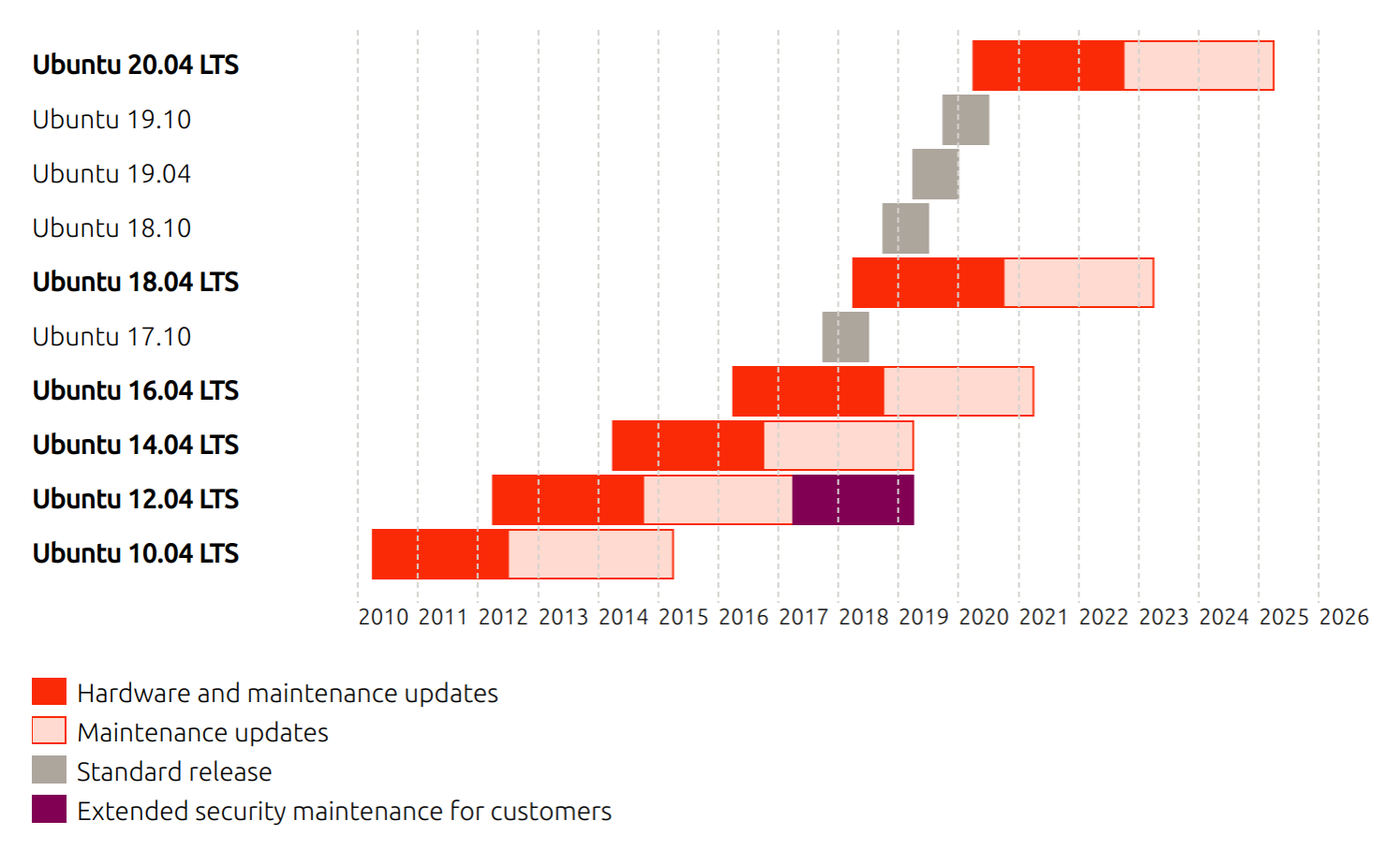 We picked 18.04 because it is a Long Term Support (LTS) version, which means it will receive hardware and maintenance updates for five years, whereas standard Ubuntu releases are only supported for nine months. This is important for enterprise-level services because it ensures any security vulnerabilities or performance updates are treated as priority over other standard releases: