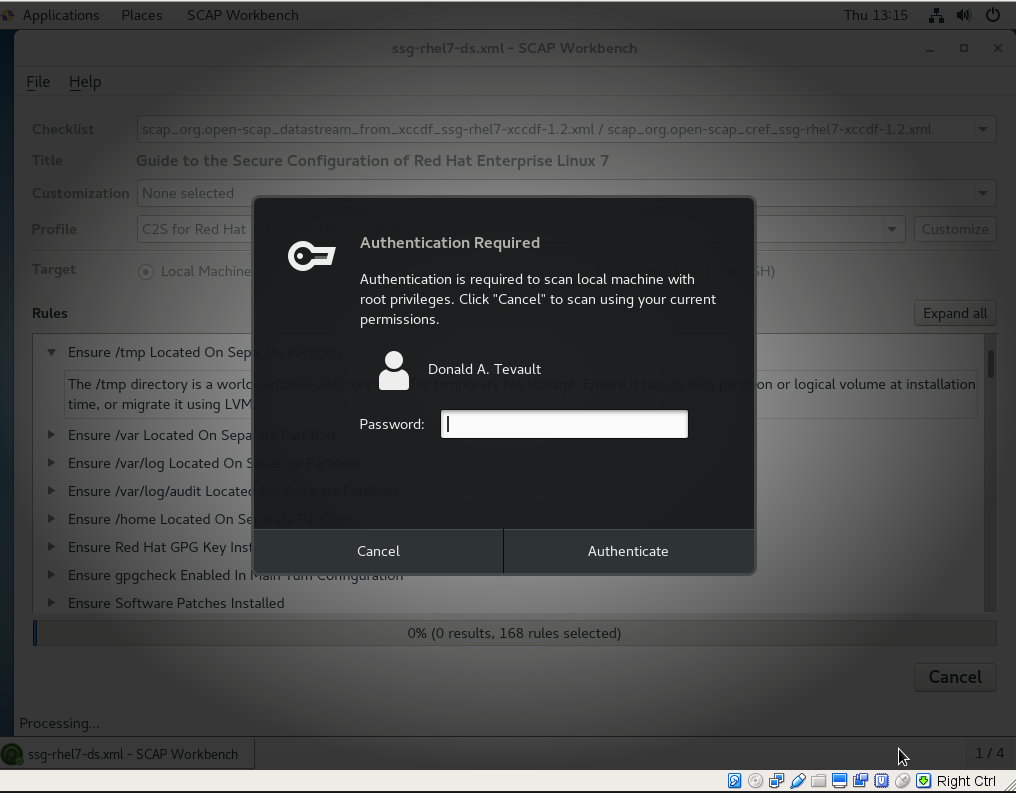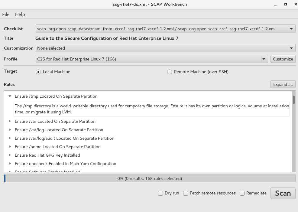For Red Hat and CentOS machines with a desktop environment installed, we have SCAP Workbench. However, if the last time you ever worked with SCAP Workbench was on Red Hat/CentOS 7.0 or Red Hat/CentOS 7.1, you were likely quite disappointed. Indeed, the early versions of the Workbench were so bad that they weren't even usable. Thankfully, things greatly improved with the introduction of Red Hat 7.2 and CentOS 7.2. Now, the Workbench is quite the nice little tool.