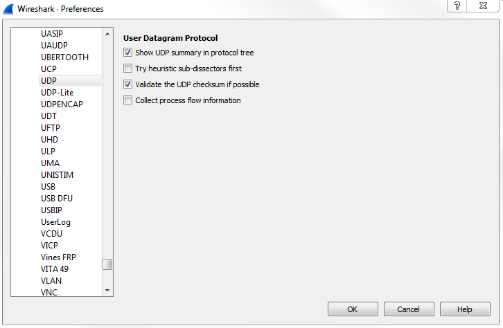Now, go to Edit | Preferences... | Protocols | UDP and turn the Validate the UDP checksum if possible option on: