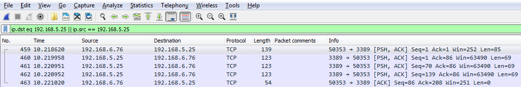 Now we have both directions of traffic, just like if I'd typed in ip.host. So you can see how using some of these shortcuts that you know of in the display filter options can make things faster for you.
