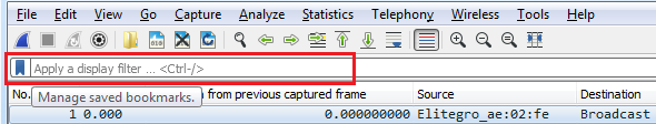 You'll see up at the top of the screen that we have a Apply a display filter entry box. And it also has that bookmarks icon, just like the capture filters did: