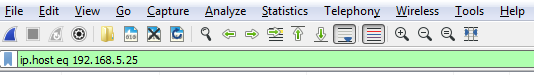 Let's start off with filtering by something. So, let's do ip.host, which is eq 192.168.5.25, so that'll be my gateway: