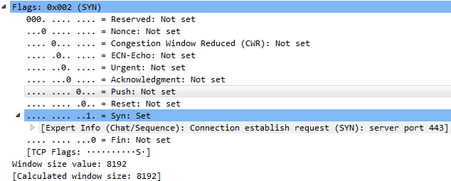In the preceding screenshot, you can see the tick mark, which means it is indeed using TCP. If we expand Transmission Control Protocol, you'll see the fields that we were just looking at in the RFC.