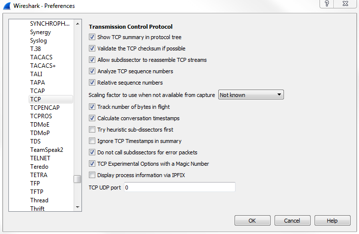 If we want, we can go to Edit | Preferences... | Protocols | TCP and enable the Validate the TCP checksum if possible if you would like: