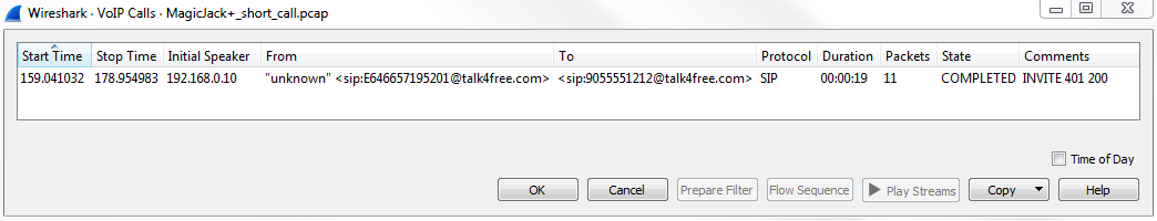 One of the really great features of Wireshark, in addition to all of its many filters and statistics and graphs that it can create, is that it has the ability to play back voice traffic. Some people might find this kind of creepy if you're an end user, that you can listen to someone's phone call, but it is data. Just like we can read all of these commands back and forth, we can read the username and password if it's unencrypted; if the SIP traffic is also unencrypted then we can listen to the phone call, too, just because it's standard data; it just happens to be voice traffic. We can do that in Wireshark very easily.