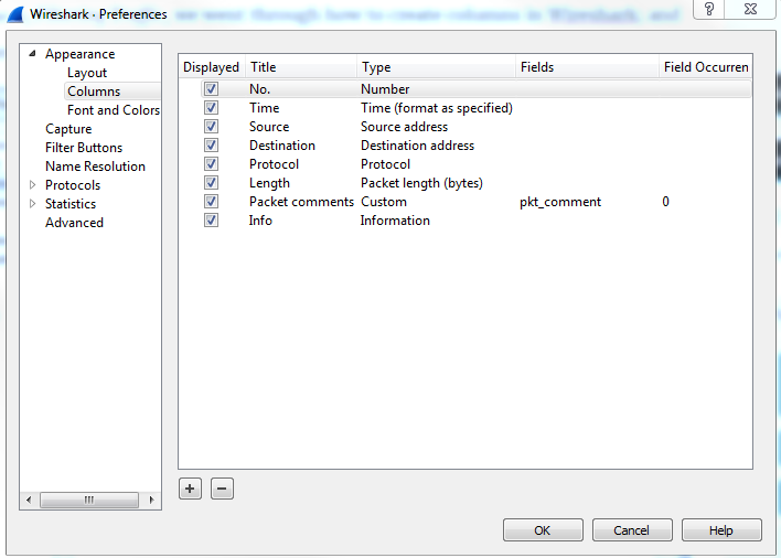 So, while you can right-click on a field within the packet details to create a column out of it, you can also create your own custom ones in here, or reorder or remove the different ones that are already there.