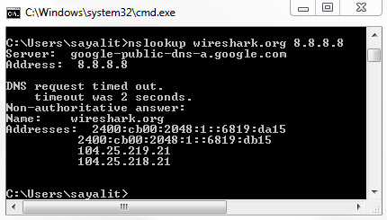 nslookup wireshark.org 8.8.8.8