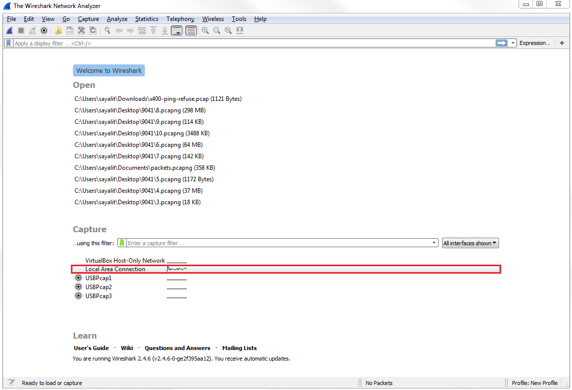 Next, we'll start a capture on the local interface, as shown in the following screenshot: