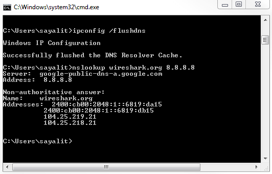 So what we want to do is take a look at this from a packet level. For this, we'll flush the DNS cache again: