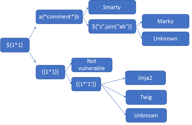 Depending on the input, it's possible to determine which is the template engine used. See the next diagram: