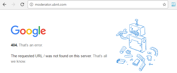 So, when the user entered the sub-domain moderator.ubnt.com from the web browser, it showed Google's page instead, as shown in the following screenshot: