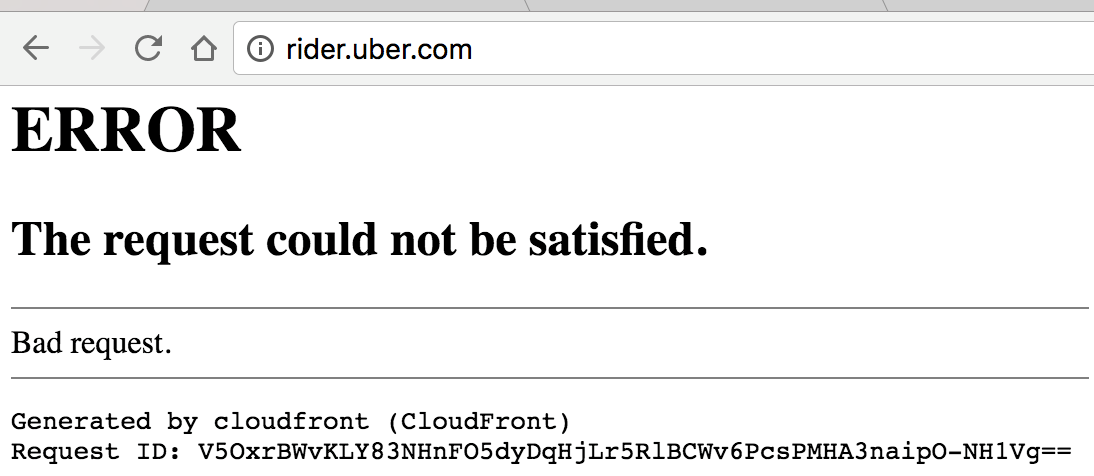 Fran Rosén detected that the sub-domain rider.uber.com failed for three hours, as it was pointing to a non-existent Cloudfront instance instead, as shown in the following screenshot: