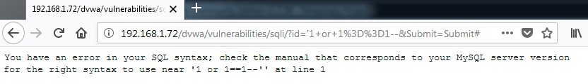 To confirm the vulnerability, we are going to test the string '1 or 1==1--: