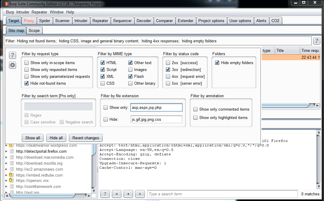 - To detect open redirects, in this window, you can select a filter to just look for HTTP 3xx error codes. With this option active, you can find all the redirections included in the application: