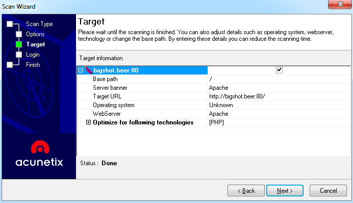 - Acunetix is going to configure some improvements to the scan by detecting the technology used in the application: