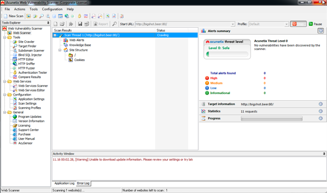 - Launch the scan. Acunetix will be showing the findings, such as sensible files and paths, but also vulnerabilities such as cross-site scriptings (XSS) and SQL injections (SQLi). Remember, any tool can detect application logic vulnerabilities by itself; human intervention is necessary for it: