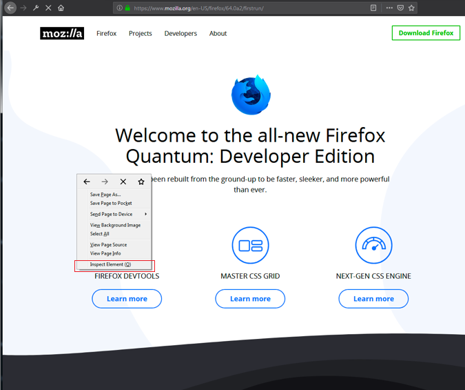 Firebug (https://getfirebug.com/) is a Firefox extension commonly used by developers to detect errors during the execution of web applications. But it can also be used to assess applications and understand abnormal behaviors. Currently, Firebug is included in Firefox's Developer edition by default. To access it, you just need to do a right-click on a website and select Inspect Element, as shown in the following screenshot: