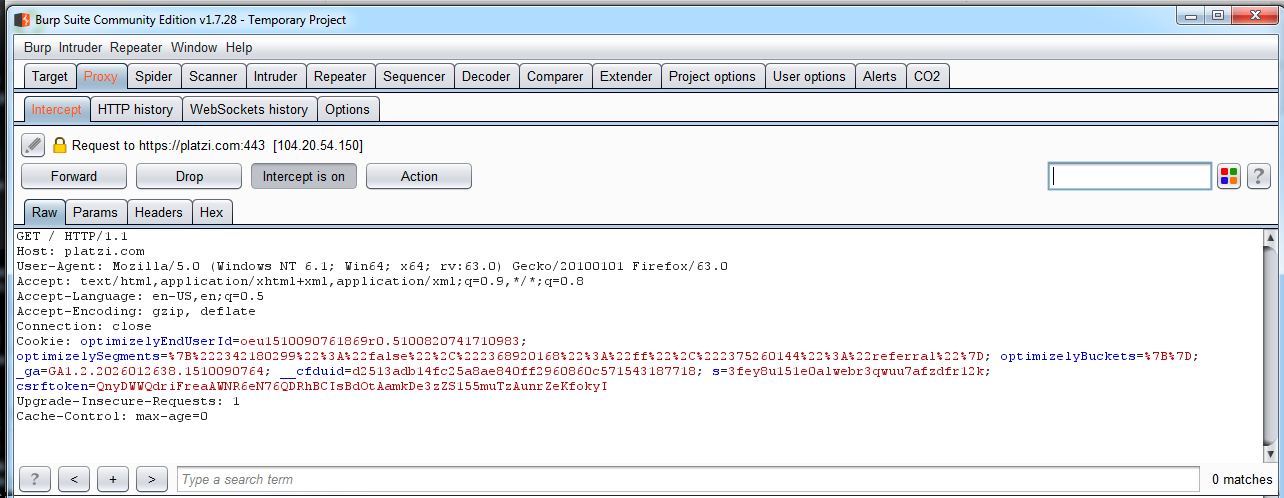 How can we find vulnerabilities such as this? Use the Repeater tool to modify the application's requests and analyze the responses with little variations. To do that in Burp Suite, you can stop a normal request by using the Intercept is on button in the Proxy tool: