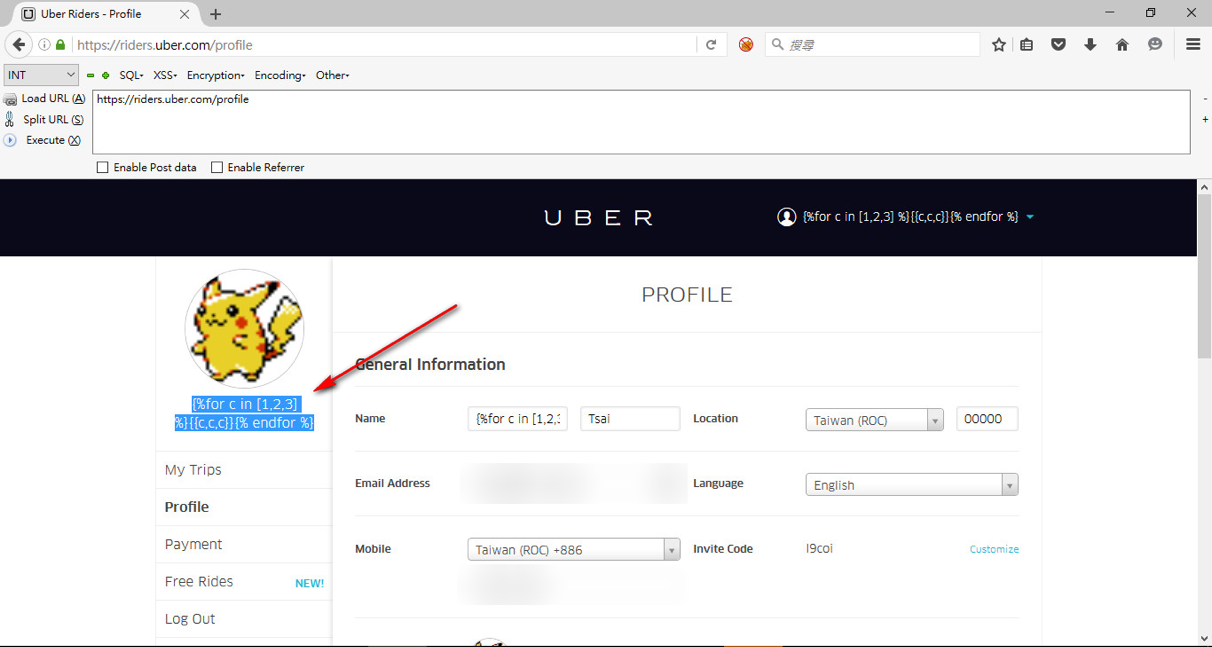 Orange Tsai entered, in theĀ NameĀ field, located in the Profile section in rider.uber.com, these numbers to be evaluated: