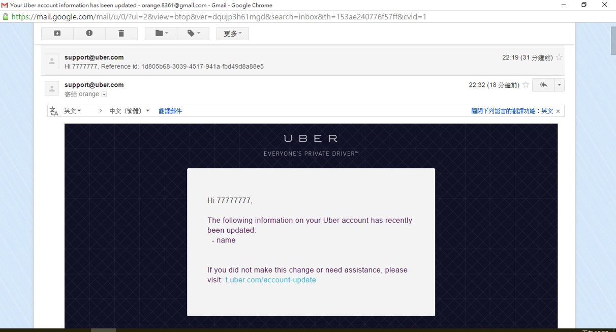 Also, in the Uber application, the name of the user changed, showing how valid the action was:
