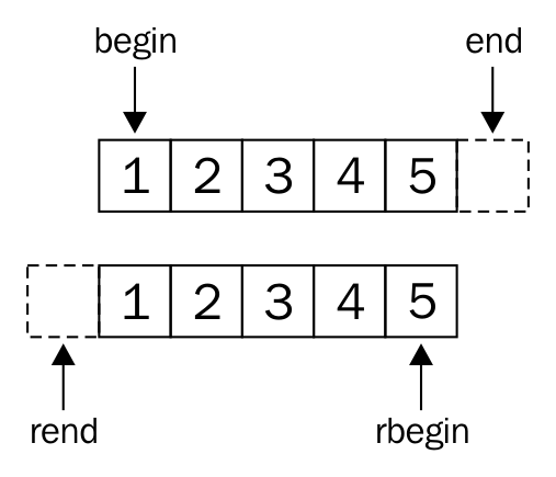 From the preceding image, you can understand that every iterator supports the begin() API, which returns the first element position, and the end() API returns one position past the last element in the container.