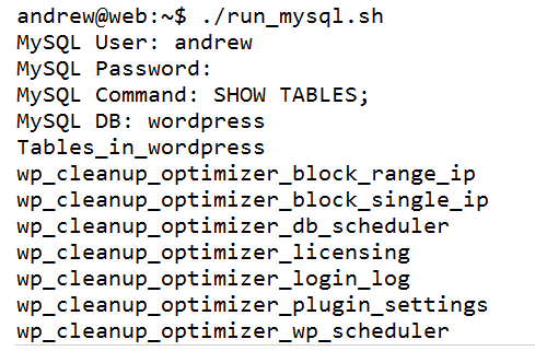 In this script, we can see that we suppress the display of the MySQL password when we input it into the read command using the -s option. Again, we use echo directly to ensure that the next prompt starts on a new line.