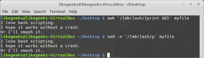 $ echo "Welcome to shell scripting" | awk '/^[Ww]elcome/{print $0}'
