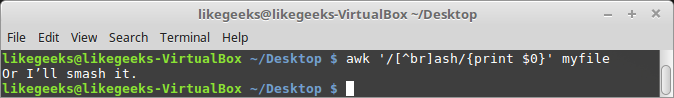 Here, we match any line that contains ash and starts neither with b norĀ r.