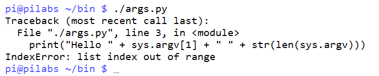 If we try to run the script and omit to supply an argument, then there will be a null value in the array when we reference index 1. This will give an error, as shown in the following screenshot: