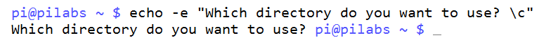 $ echo -e "Which directory do you want to use? \c"