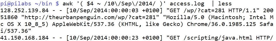 $ awk ' ( $4 ~ /10\/Sep\/2014/ ) ' access.log