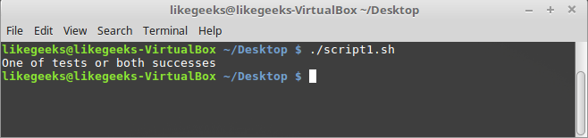 #!/bin/bash mydir=/home/mydir name="mokhtar" if [ -d $mydir ] || [ -n $name ]; then echo "One of tests or both successes" else echo "Both failed" fi