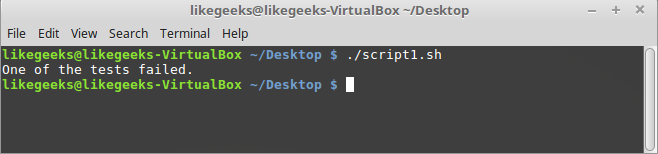 #!/bin/bash mydir=/home/mydir name="mokhtar" if [ -d $mydir ] && [ -n $name ]; then echo "The name is not zero length and the directory exists." else echo "One of the tests failed." fi