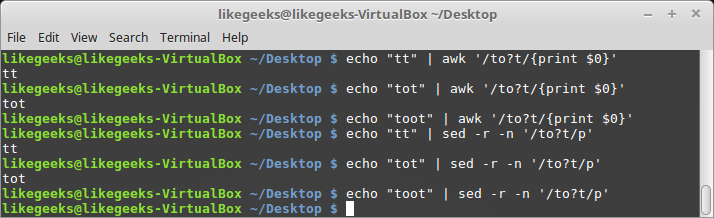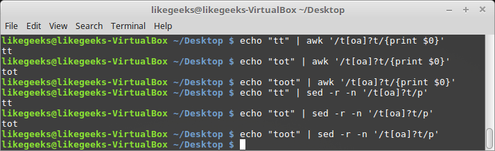 $ echo "toot" | awk '/t[oa]?t/{print $0}'
