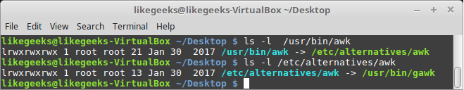 Note that the awk interpreter that we will use in this book is gawk but there is a symbolic link for it with the name awk. So awk and gawk are the same command.