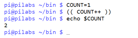 Perhaps a little more useful to us in scripting is the C-style parameter manipulation that we can include using the double parenthesis. We can often use this to increment a counter within a loop and also put a limit on the number of times the loop iterates. Consider the following command: