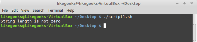 #!/bin/bash if [ -z "mokhtar" ] then echo "String length is zero" else echo "String length is not zero" fi