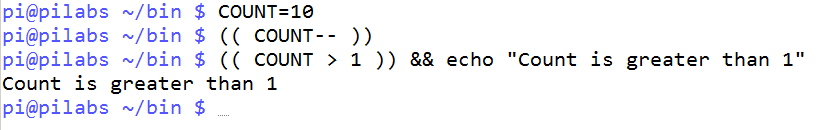 $(( COUNT > 1 )) && echo "Count is greater than 1"