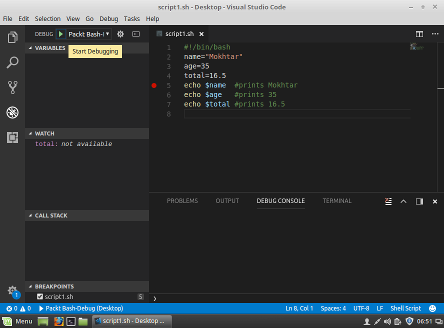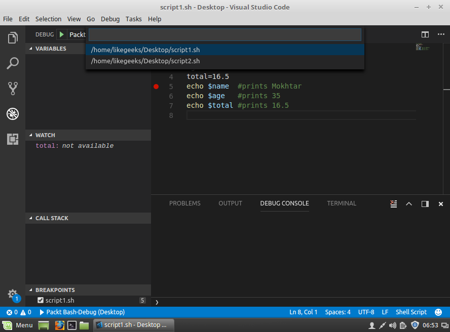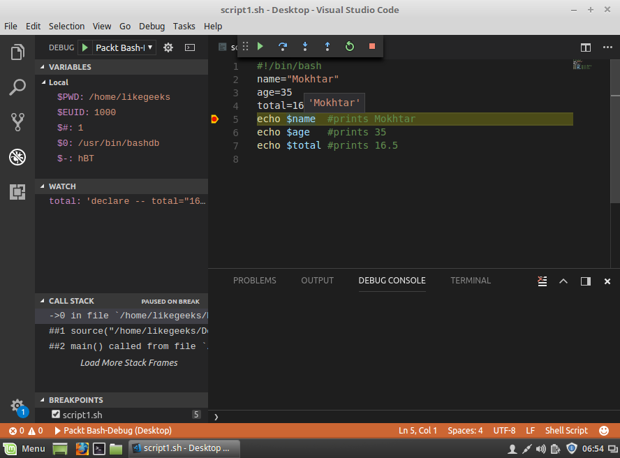 Another modern way of debugging shell scripts is by using Visual Studio Code.